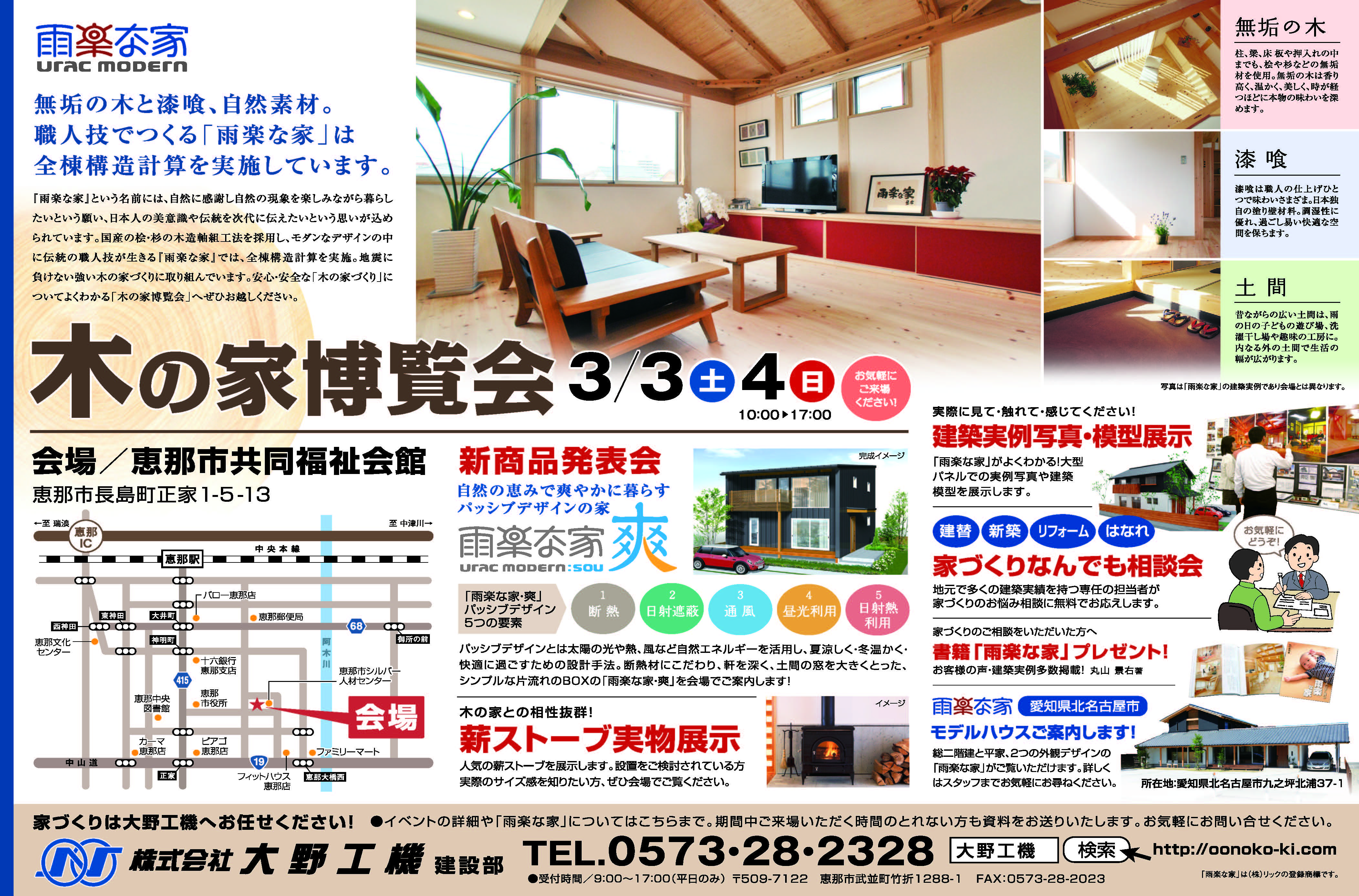 2023.11.22 NEWSイベント住宅相談会 「雨楽な家」新築・建替え 木の家相談会 掲載日: 2023.11.222024.12.5 管理者の投稿 見て・さわって・聞いて!木の家づくりがよくわかる展示相談会です。この機会にぜひご来場ください 開催日 12月2日(土)~ 12月3日(日) 時間 10:00 ~ 17:00 会場 瑞浪市産業振興センター 真冬の木の家の温 […]
