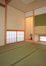 桧・杉・漆喰・和紙など自然素材の安らぎ空間。