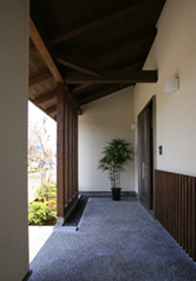 大野工機が建てる 端正ないぶし瓦の屋根が横へ伸びて愛車と遊ぶガレージのある家