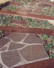石は石器時代から今に至るまで暮らしに欠かせない素材です。中でも御影石(花崗岩)は石材として多く使われ、雲母や石英など有色鉱物の結晶からなり硬く美しく、磨くと良い光沢がでます。鉄平石は板状なので、敷石、張り石として活用されます。自然石の割り肌を活かした鉄平石のアプローチは、変化に富んだ造形美を見せてくれます。石のアプローチは客人へのウェルカムの思いを石でデザインしたもの。植栽や苔や土と一体となり心なごませます。自然石の質感は五感をいやしてくれます。